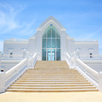 英倫式貴族教堂——Monterey Lumer Church,在沖繩海島展現彷彿白金漢宮般的弘偉氣派,及倫敦式浪漫。碧海藍天之下,採用白色主調的教堂更見優雅鮮明,以白色大理石步道與落地玻璃,勾勒出古典華麗的質感。儀式後攜手彼此步落故堂前的長樓梯,漫步英式庭園,燕尾服與白色婚紗的雙重剪影,宣告對方為生命中的唯一。