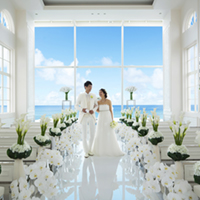 位於美國村內的CentleGenda Chapel,從那霸機場出發僅40分鐘的車程,交通非常方便。純白色的神聖教堂,洋溢高貴典雅的古典歐洲建築風格;三面環海的佈景,證禮台設置於正中間,新人能在一大片蒼茫的海洋及天空的抱擁下,交換藍色的永恆誓言,演繹閃亮的「海與光」婚禮美學。
