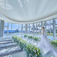 Grand Bleu Chapel 於2018年全新落成,座落於日本沖繩名護市的度假酒店內。卵形設計的純白海景教堂,以曲面玻璃與大理石捕捉自然光影,儀式時刻光線折射如天使祝福,讓新人在大自然的祝福下,許諾永恆的愛之誓言。